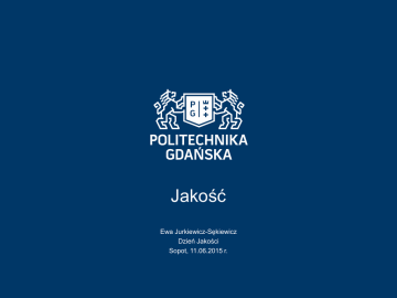 Jakość Ewa Jurkiewicz-Sękiewicz Dzień Jakości Sopot, 11.06.2015 r. Definicje • Platon Jakość – poiotes - jest sądem oceniającego, subiektywnie zależnym od doświadczenia. • Arystoteles Jakością nazywam to, na mocy czego rzeczy są w pewien sposób określone. • Cyceron Jakość – qualitas - to własność (właściwość) przedmiotu. Definicje • Kartezjusz Dualistyczne ujęcie jakości: jakość pierwotna, tkwiąca w przedmiocie i jakość wtórna, emitowana przez przedmiot. • Kant Zbiór cech wyodrębnionego fragmentu subiektywnie postrzeganej obiektywnej rzeczywistości. Spadkobiercy Platona Poiotes • Wartościowanie subiektywne • Jeśli nie ma osoby wypowiadającej osąd, nie ma również piękna • Jakość a piękno • Czy ponosimy odpowiedzialność za piękno? • Na czym polega odpowiedzialność za jakość? Potomkowie Cycerona Jakość w ujęciu technicznym • B. Oyrzanowski: Jakość to zespół cech fizycznych, chemicznych, biologicznych itp. charakteryzujących dany produkt i odróżniający go od innych produktów. Jakość w ujęciu technicznym • S. Dulski: Jedynym racjonalnym pojęciem jakości jest jakość techniczna wyrobu i produkcji, wyprowadzona z rzeczowych cech produktów. Jakość w ujęciu technicznym • B. Miszewski: Jakość to zespół cech fizycznych, dzięki którym mają być zaspokojone określone potrzeby ludzkie Jakość w ujęciu humanistycznym Jakość życia Jakość pracy Jakość kultury Jakość człowieka Jakość relacji między ludźmi Środowisko akademickie Co wpływa na jakość kształcenia? •Jakość nauczyciela jakość studenta •Jakość relacji student - nauczyciel •Jakość wspólnoty akademickiej Środowisko akademickie Jakie są fundamenty jakości akademickiej? doskonały, znakomity, rewelacyjny, genialny, super, świetny, niepowtarzalny, wyjątkowy, bajeczny, unikalny, prestiżowy, wow! dobry? beznadziejny, fatalny, chała, tragedia, dno, masakra, żal okropny, żałosny, makabryczny, porażka Środowisko akademickie Skąd bierze się społeczne zapotrzebowanie na jakość? •Z pragnienia utrzymania jakości zastanej? •Z potrzeby doskonalenia jakości? •Z potrzeby wyróżnienia czegoś lub kogoś? Środowisko akademickie Skąd bierze się społeczne zapotrzebowanie na jakość? •Z potrzeby ponownego zdefiniowania pojęcia jakości? •Z odwiecznego pragnienia osiągnięcia doskonałości? •Z buntu przeciw bylejakości? Widmo bylejakości •Byle jak, byle szybciej… •Byle trójka, byle zaliczyć… •Byle już sobie poszedł… •Byle zdobyć punkty… Widmo bylejakości •Byle papier, byle dyplom… •Byle studia ? •Byle praca ??? Życzę dobrego dnia…