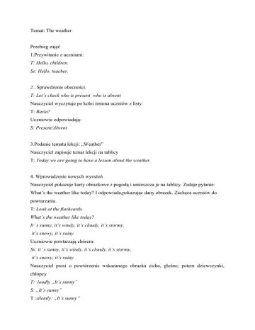 Temat: The weather Przebieg zajęć 1.Przywitanie z uczniami: T