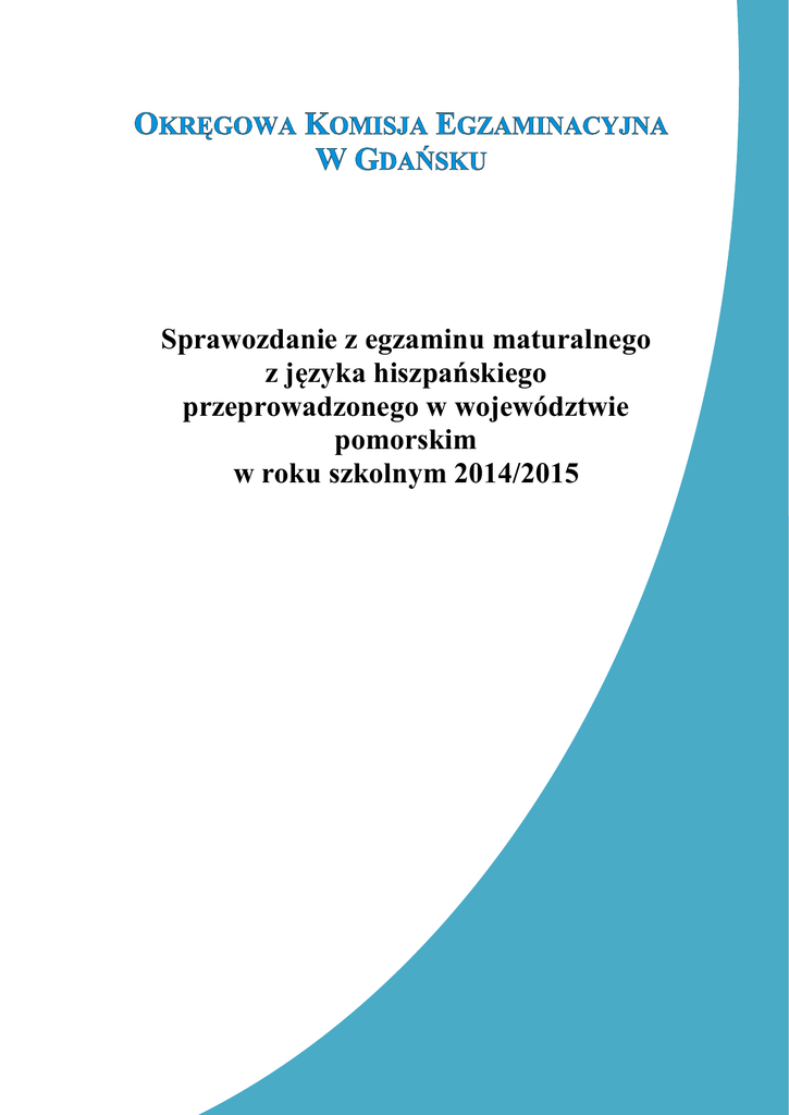 Sprawozdanie z egzaminu maturalnego z języka hiszpańskiego przeprowadzonego w województwie pomorskim w roku szkolnym 2014/2015 Okręgowa Komisja Egzaminacyjna w Gdańsku ul. Na Stoku 49, 80-874 Gdańsk tel. 58 320 55 90, fax 58 520 55 91 e-mail: [email protected] www.oke.gda.pl Centralna Komisja Egzaminacyjna ul. Józefa Lewartowskiego 6, 00-190 Warszawa tel. 022 536 65 00, fax 022 536 65 04 e-mail: [email protected] www.cke.edu.pl Język hiszpański 1 Język hiszpański – formuła od roku 2015 Poziom podstawowy Do egzaminu z języka hiszpańskiego na poziomie podstawowym przystąpiło dwudziestu sześciu zdających- nie zamieszczono parametrów statystycznych zestawu zadań oraz komentarza z analizy jakościowej. Odpowiedni komentarz wraz z wnioskami i rekomendacjami znajduje się w sprawozdaniu z egzaminu maturalnego Osiągniecia maturzystów w roku 2015 opublikowanym przez CKE (www.cke.edu.pl). Poziom rozszerzony 1. Opis arkusza Arkusz egzaminacyjny z języka hiszpańskiego na poziomie rozszerzonym składał się z 29 zadań zamkniętych różnego rodzaju (wyboru wielokrotnego, zadań na dobieranie) oraz 9 zadań otwartych, w tym 8 krótkiej i 1 rozszerzonej odpowiedzi. Zadania sprawdzały wiadomości oraz umiejętności w czterech obszarach: rozumienia ze słuchu (12 zadań zamkniętych), rozumienia tekstów pisanych (13 zadań zamkniętych), znajomości środków językowych (4 zadania zamknięte i 8 zadań otwartych krótkiej odpowiedzi) oraz tworzenia wypowiedzi pisemnej (1 zadanie otwarte rozszerzonej odpowiedzi). Zadania na rozumienie ze słuchu były oparte na nagranych tekstach, odtworzonych podczas egzaminu z płyty CD, natomiast zadania na rozumienie tekstów pisanych oraz zadania na znajomość środków językowych były oparte na tekstach autentycznych lub w minimalnym stopniu adaptowanych zamieszczonych w arkuszu egzaminacyjnym. Znajomość środków językowych była sprawdzana na krótkich tekstach lub za pomocą niepowiązanych ze sobą zdań. Za rozwiązanie wszystkich zadań zdający mógł otrzymać 50 punktów (1 punkt za każde zadanie zamknięte lub otwarte w obszarach rozumienia ze słuchu, rozumienia tekstów pisanych i znajomości środków językowych oraz 13 punktów za wypowiedź pisemną). 2. Dane dotyczące populacji zdających Tabela 6. Zdający rozwiązujący zadania w arkuszu standardowym* Liczba zdających Zdający rozwiązujący zadania w arkuszu standardowym ogółem 46 ze szkół na wsi ze szkół w miastach do 20 tys. mieszkańców ze szkół w miastach od 20 tys. do 100 tys. mieszkańców ze szkół w miastach powyżej 100 tys. mieszkańców 0 0 15 31 ze szkół publicznych ze szkół niepublicznych 43 3 kobiety mężczyźni 35 11 * Dane w tabeli dotyczą wszystkich tegorocznych absolwentów. Tabela 7. Zdający rozwiązujący zadania w arkuszach dostosowanych Zdający rozwiązujący zadania w arkuszach dostosowanych z autyzmem, w tym z zespołem Aspergera słabowidzący niewidomi słabosłyszący niesłyszący ogółem 0 0 0 0 0 0 2 Sprawozdanie z egzaminu maturalnego 2015 3. Przebieg egzaminu Tabela 8. Informacje dotyczące przebiegu egzaminu Termin egzaminu Czas trwania egzaminu Liczba szkół Liczba zespołów egzaminatorów* Liczba egzaminatorów* Liczba obserwatorów 1 (§ 143)** Liczba w przypadku: unieważnień2 § 99 ust. 1 stwierdzenia niesamodzielnego rozwiązywania zadań przez § 99 ust. 2 § 146 ust. 3 zdającego wniesienia lub korzystania przez zdającego w sali egzaminacyjnej z urządzenia telekomunikacyjnego zakłócenia przez zdającego prawidłowego przebiegu części egzaminu w sposób utrudniający pracę pozostałym zdającym stwierdzenia podczas sprawdzania pracy niesamodzielnego rozwiązywania zadań przez zdającego stwierdzenia naruszenia przepisów dotyczących przeprowadzenia egzaminu Liczba wglądów2 (§ 107)** Liczba prac, w których nie podjęto rozwiązania zadań 20 maja 2015 r. 150 minut 17 1 8 0 0 0 0 0 0 0 0 * Dane dotyczą obu poziomów egzaminu (podstawowego i rozszerzonego) łącznie. ** Dane dotyczą „nowej formuły” i „starej formuły” łącznie. 1 Na podstawie rozporządzenia Ministra Edukacji Narodowej z dnia 30 kwietnia 2007 r. w sprawie warunków i sposobu oceniania, klasyfikowania i promowania uczniów i słuchaczy oraz przeprowadzania sprawdzianów i egzaminów w szkołach publicznych (DzU. nr 83, poz. 562, ze zm.) Język hiszpański 3 4. Podstawowe dane statystyczne Wyniki zdających Wykres 3. Rozkład wyników zdających Tabela 9. Wyniki zdających – parametry statystyczne* Zdający Liczba zdających Minimum (%) Maksimum (%) Mediana (%) Modalna (%) Średnia (%) Odchylenie standardowe (%) ogółem 46 8 96 61 74 56 23 * Dane dotyczą tegorocznych absolwentów, którzy przystąpili do wszystkich egzaminów obowiązkowych. Parametry statystyczne są podane dla grup liczących 30 lub więcej zdających. 4 Sprawozdanie z egzaminu maturalnego 2015 Poziom wykonania zadań Tabela 10. Poziom wykonania zadań Wymagania ogólne II. Rozumienie wypowiedzi (ustnych) tj. Rozumienie ze słuchu II. Rozumienie wypowiedzi (pisemnych) tj. Rozumienie tekstów pisanych I. Znajomość środków językowych Numer zadania 1.1. 1.2. 1.3. 2.1. 2.2. 2.3. 2.4. 3.1. 3.2. 3.3. 3.4. 3.5. 4.1. 4.2. 4.3. 4.4. 5.1. 5.2. 5.3. 5.4. 6.1. 6.2. 6.3. 6.4. 6.5. 7.1. 7.2. 7.3. 7.4. 8.1. 8.2. 8.3. 8.4. 9.1. 9.2. 9.3. 9.4. Wymagania szczegółowe / Kryteria 2.1) Zdający określa główną myśl tekstu. 2.4) Zdający określa intencję nadawcy/autora tekstu. 2.1 R) Zdający oddziela fakty od opinii. 2.3) Zdający znajduje w tekście określone informacje. 2.3) Zdający znajduje w tekście określone informacje. 2.1) Zdający określa główną myśl tekstu. 3.3) Zdający znajduje w tekście określone informacje. 3.6) Zdający rozpoznaje związki pomiędzy poszczególnymi częściami tekstu. 3.3) Zdający znajduje w tekście określone informacje. 3.4) Zdający określa intencje nadawcy/autora tekstu. 3.3) Zdający znajduje w t
