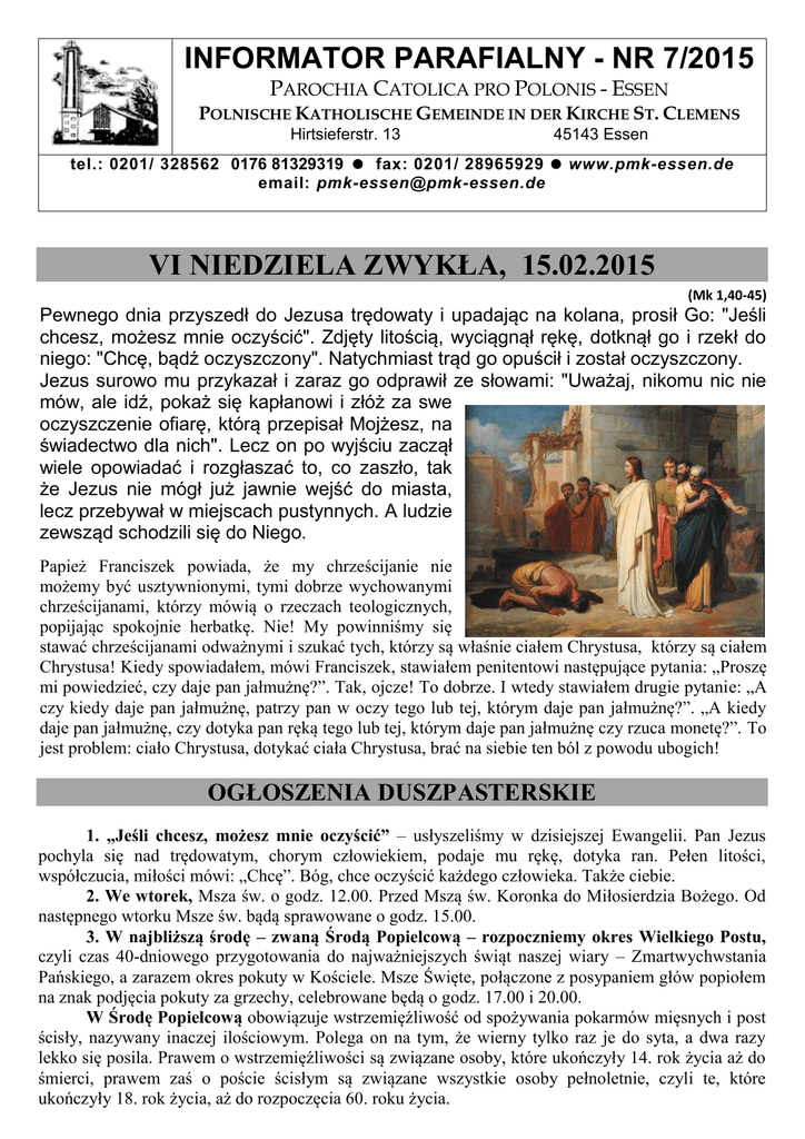 informator parafialny - nr 7/2015 vi niedziela zwykła, 15.02.2015
