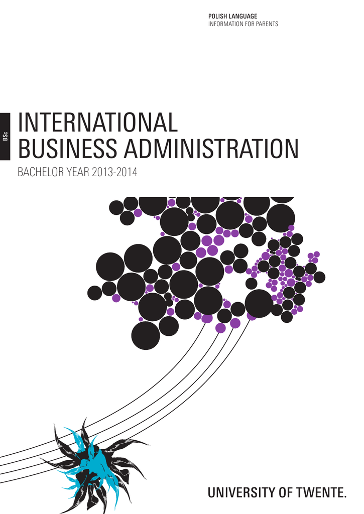 BSc POLISH LANGUAGE INFORMATION FOR PARENTS INTERNATIONAL BUSINESS ADMINISTRATION BACHELOR YEAR 2013-2014 INTERNATIONAL BUSINESS ADMINISTRATION 2 INTERNATIONAL BUSINESS ADMINISTRATION Międzynarodowa Administracja Biznesowa – jest trzyletnim kierunkiem studiów, akredytowanym przez EPAS – Europejska Komisję Akredytacyjną (European Programmes Accreditation Systems). Ten międzynarodowy kierunek ma na celu przygotowanie ambitnych studentów do globalnej kariery w świecie biznesu. Studia skupiają się na zarządzaniu działalnością gospodarczą w kontekście międzynarodowym. Nasi studenci i wykładowcy są obywatelami różnych państw z różnym dorobkiem kulturowym, więc od samego początku studiów studenci uczą się pracy w zespole wielokulturowym i międzynarodowym. Podczas trzyletniego programu, studenci mają możliwość poszerzenia swojego doświadczenia międzynarodowego poprzez pisanie pracy licencjackiej w przedsiębiorstwie zagranicznym, jak również wyjazd na naukę za granicę. Uniwersytet Twente posiada liczne kontakty oraz umowy z uniwersytetami z całego świata, a możliwości wymiany międzynarodowej są na bieżąco uaktualniane. INTERNATIONAL BUSINESS ADMINISTRATION 3 Międzynarodowa Administracja Biznesowa oferuje wielodyscyplinarne podejście do tematu zarządzania i badań firm. Studenci mogą połączyć szereg dyscyplin biznesowych, takich jak finanse, zarządzanie zasobami ludzkimi, zarządzanie innowacjami, zaopatrzenie, zarządzanie produkcją oraz marketing. Na Uniwersytecie Twente uczymy studentów budować pomosty między różnymi dyscyplinami i krajami, a także między teorią i praktyką w świecie biznesu. Od pierwszego modułu studenci zawierają znajomości w świecie biznesu, a dzięki bezpośrednim kontaktom z liderami przedsiębiorczości rozwijają swoje umiejętności biznesowe. Ponadto wiedza i umiejętności zawodowe są rozwijane poprzez połączenie zajęć teoretycznych z projektami praktycznymi. CEL STUDIÓW Międzynarodowa Administracja Biznesu oferuje modułowy program kształcenia (co oznacza, że integruje wiedzę i umiejętności z wyraźnym nastawieniem na kształtowanie umiejętności). Rok akademicki składa się z czterech modułów, z których każdy koncentruje się na pojedynczym projekcie. Projekty te wykorzystują wiedzę teoretyczną i praktyczną. Taki rodzaj kształcenia wpływa korzystnie na pogłębianie wiedzy z różnych dziedzin, wiec nasi studenci szybko gromadzą wystarczającą ilość informacji by wziąć udział w rozmowie z ekspertami z danej dziedziny. Studenci są szkoleni na osoby, które potrafią rozwiązywać problemy oraz potrafią pokierować swoim rozwojem osobistym i zawodowym w roli organizatora czy naukowca. Naszym celem jest kształcenie studentów by byli kreatywni i wprowadzali nowatorskie rozwiązania i posiadali odpowiednie narzędzia do rozwiązywania istotnych kwestii społecznych. A PROGRAM MAGISTERSKI Absolwenci kierunku otrzymują tytuł Bachelor of Science (tytuł licencjata). Po ukończeniu studiów licencjackich studenci mogą wkroczyć na rynek pracy lub kontynuować naukę na studiach magisterskich. Wydział oferuje studia magisterskie w Administracji Biznesowej, w którym studenci mogą wybrać spośród następujących specjalizacji: Zarządzanie Finansami (Financial Management), Zarządzanie Zasobami Ludzkimi (Human Resource Management), Innowacja i Przedsiębiorczość (Innovation and Entrepreneurship), Zarządzanie Międzynarodowe (International Management), Zarządzanie Usługami i Zmianami (Service and Change Management) oraz Zarządzanie Informacją (Information Management). INTERNATIONAL BUSINESS ADMINISTRATION 4 WARUNKI PRZYJĘCIA I ZAPISU Nasz program jest przeznaczony dla ambitnych i zmotywowanych studentów, którzy nie boją się wyzwań. Kandydaci ubiegający się o przyjęcie na studia muszą spełnić następujące warunki: udokumentować ukończenie szkoły ponadgimnazjalnej (dyplom musi być równorzędny z dyplomem holenderskim) oraz posiadać doskonałą wiedzę w zakresie matematyki i bardzo dobrą znajomość języka angielskiego (więcej informacji na stronie: http://goo.gl/emNr2 Jeśli Państwa dziecko spełnia powyższe kryteria wtedy może zapisać się na studia. Nasze Biuro Rekrutacji chętnie pomoże Państwu i udzieli odpowiedzi na wszystkie pytania dotyczące procedury rekrutacji i zapisu. Admission and enrolment NADZOROWANIE Uniwersytet Twente jest znany ze swojego indywidualnego podejścia do studentów, polityki otwartych drzwi swojej kadry nauczycielskiej oraz nieformalnej kultury organizacyjnej. W ramach naszego programu studenci otrzymują intensywną opiekę ze strony doradców studenckich, wykładowców i mentorów, którzy uważnie monitorują postęp podczas wszystkich projektów. Aby zapobiec rezygnacji z dalszej nauki w trakcie studiów, uczelnia sprawdza postęp studenta, jego zdobyte oceny oraz punkty na koniec pierwszego roku akademickiego. Wówczas wystawiana jest opinia na temat postępu studenta. Opinia ta jest PERSPEKTYWY NA PRZYSZŁOŚĆ wiążąca. Jeżeli okaże się, że student nie uzyskał Nasi studenci są przygotowani do analizowania minimalnej liczby wymaganych punktów, dalsza problemów oraz opracowywania skutecznych rozwiązań kontynuacja studiów jest niemożliwa. Przy wystawianiu w zakresie organizacji pracy w międzynarodowym opinii brane są pod uwagę okoliczności osobiste środowisku. Ich umiejętności są dużymi zaletami w studenta. Naszą ambicją jest pomoc studentom w świecie biznesu: zarówno w relacjach występujących szybkim rozwoju zależnie od ich możliwości. Robimy to pomiędzy firmą a firmą jak i firmą a konsumentem (B2B, poprzez oferowanie kształcenia modułowego, B2C), w handlu, w energii czy w doradztwie. Nasi przedmiotów i specjalności fakultatywnych, ocenę absolwenci są często zatrudniani na stanowiskach postępów ucznia oraz intensywnej opieki indywidualnej. menadżersk