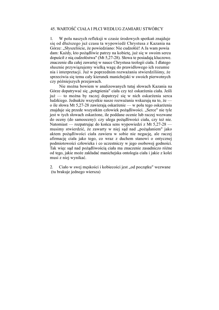 45. WARTOŚĆ CIAŁA I PŁCI WEDŁUG ZAMIARU STWÓRCY 1. W