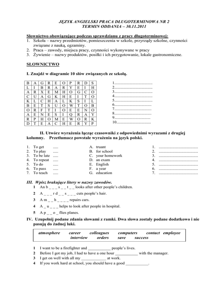 JĘZYK ANGIELSKI PRACA DŁUGOTERMINOWA NR 2