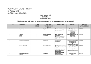 Lista ofert pracy - PUP Krosno Odrz.
