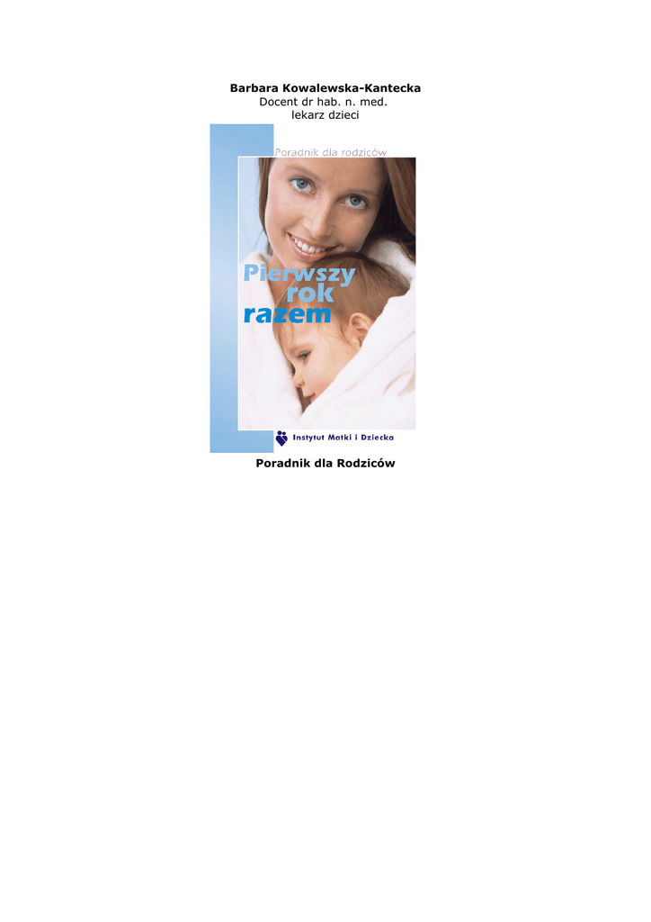 Barbara Kowalewska-Kantecka Docent dr hab. n. med. lekarz dzieci Poradnik dla Rodziców SPIS TREŚCI Okres noworodkowy .................................................................................................................. 3 Poród ................................................................................................................................... 3 Pierwsze dni po urodzeniu.......................................................................................... 4 Karmienie......................................................................................................................... 14 Nareszcie w domu ........................................................................................................ 20 Rozwój w drugim i trzecim miesiącu ....................................................................... 34 Drugi miesiąc.................................................................................................................. 34 Trzeci miesiąc Ŝycia ..................................................................................................... 38 Pozytywne znaczenie dotyku................................................................................... 40 Spacery ............................................................................................................................. 41 Rozwój w drugim kwartale ....................................................................................................... 42 Czwarty miesiąc Ŝycia................................................................................................. 42 Piąty miesiąc Ŝycia....................................................................................................... 43 Szósty miesiąc Ŝycia.................................................................................................... 45 Rozwój w trzecim kwartale ........................................................................................ 48 Siódmy miesiąc Ŝycia .................................................................................................. 48 Ósmy miesiąc Ŝycia...................................................................................................... 49 Dziewiąty miesiąc Ŝycia ............................................................................................. 50 Rozwój w czwartym kwartale................................................................................................... 53 Dziesiąty miesiąc Ŝycia .............................................................................................. 53 Jedenasty miesiąc Ŝycia............................................................................................. 53 Dieta dziecka w czwartym kwartale ..................................................................... 54 Dwunasty miesiąc Ŝycia ............................................................................................. 55 Zagdanienia szczególne................................................................................................. 56 PrzedłuŜona Ŝółtaczka noworodków .................................................................... 56 Hemolityczna choroba noworodków .................................................................... 56 Noworodkowe zapalenie spojówek....................................................................... 57 Dziecko z niedosłuchem............................................................................................. 57 Co naleŜy wiedzieć o witaminach? ........................................................................ 58 Krzywica ........................................................................................................................... 59 Dziecko w rodzinie alergicznej (atopia) ............................................................. 60 Gdy dziecku coś dolega .............................................................................................. 62 Okres po urodzeniu i Ty, czyli Mama ...................................................................................... 64 Problemy kobiety w połogu...................................................................................... 64 Dalszy okres połogu .................................................................................................... 69 Psychologiczne problemy w połogu ...................................................................... 71 Problemy współŜycia po porodzie ......................................................................... 72 OdŜywianie matki karmiącej.................................................................................... 74 Ćwiczenia fizyczne po porodzie* ........................................................................... 80 Pytania i odpowiedzi ................................................................................................................ 82 Szczepienia zalecane ...................................................................................................... 91 Drodzy Rodzice Gdyby Wasze nowo narodzone dziecko, córeczka lub synek, umiało mówić, zapewne powiedziałoby na powitanie: Kochana Mamo, drogi Tatusiu, przyjrzyjcie mi się, zobaczcie, jak całkowicie jestem bezbronne i zaleŜne od Was. Moje dalsze Ŝycie nie będzie moŜliwe, jeśli nie będziecie mnie karmić, pielęgnować i otaczać wszechstronną opieką, a przede wszystkim kochać. Nie potrafię na razie w Ŝaden sposób okazać Wam, jak bardzo jesteście mi potrzebni i Ŝe naleŜę wyłącznie do Was. Przyniosłem ze sobą na świat niepowtarzalny, mnie tylko właściwy, zespół wrodzonych cech i uzdolnień, upodobań i talentów, które róŜnić mnie będą nawet od mojego rodzeństwa. Starajcie się je dojrzeć i pielęgnować. Pozwólcie, aby w blasku Waszej miłości mogły się one rozwijać i 2 rozkwitać, abym mogło wzrastać w radości, spokoju i bez lęku.