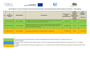 Operacje wybrane do dofinansowania w ramach dostępnego limitu
