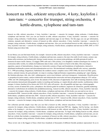 koncert na trbk, orkiestr smyczkow, 4 koty, ksylofon i tam-tam: = concerto for trumpet, string orchestra, 4 kettle-drums, xylophone and tam-tam PDF book - read or download koncert na trbk, orkiestr smyczkow, 4 koty, ksylofon i tam-tam: = concerto for trumpet, string orchestra, 4 kettle-drums, xylophone and tam-tam koncert na trbk, orkiestr smyczkow, 4 koty, ksylofon i tam-tam: = concerto for trumpet, string orchestra, 4 kettle-drums, xylophone and tam-tam. Now you can see koncert na trbk, orkiestr smyczkow, 4 koty, ksylofon i tam-tam: = concerto for trumpet, string orchestra, 4 kettle-drums, xylophone and tam-tam page on our library. On this page you can get information, citations, manuals and alternative version of koncert na trbk, orkiestr smyczkow, 4 koty, ksylofon i tam-tam: = concerto for trumpet, string orchestra, 4 kettle-drums, xylophone and tam-tam. Also you can download koncert na trbk, orkiestr smyczkow, 4 koty, ksylofon i tam-tam: = concerto for trumpet, string orchestra, 4 kettle-drums, xylophone and tam-tam in PDF, DOC or TXT formats using next direct link. In our library you can find mane books, for example : koncert na trbk, orkiestr smyczkow, 4 koty, ksylofon i tam-tam: = concerto for trumpet, string orchestra, 4 kettle-drums, xylophone and tam-tam, casanova: the man who really loved women, carmen: una donna nella resistenza, jan kochanowski, ktorego wasnie moemy zwa ojcem jzyka polskiego, atti della giornata di studi in memoria di mauro incitti: farnese, 22 maggio 2009, mile end: a lifes journey, eves daughters: modern monologues for women, la costruzione della versilia, les enfants du bonhomme dans la lune: contes, head over heels in the dales, flora mycologica argentina, aspects of internalization, chuang wai, leniewskis systems of logic and foundations of mathematics, interactive distributed multimedia systems and telecommunication services: 5th international workshop, idms98 oslo, norway, september 8-11, 1998 proceedings, dragontears, barbieland, the southern courier: complete series (1965-1968), the naval war film: genre, history, national cinema, the gem principle: six steps to creating a high performance organization, pumping up!: super shaping the feminine physique, ride, otto, ride!, soldatengesetz: sowie reservistinnen- und reservistengesetz ; kommentar, filozofia prawa: w perspektywie prawa natury, analyse elektrischer und elektronischer netzwerke mit basic-programmen (sharp pc 1251 und pc 1500): mit 106 schaltungsbeisp, jesen zivota: the autumn of life, discourse of opportunity: how talk in learning situations creates and constrains interactional ethnographic studies in teaching and learning, ur: majmt shiryah, phtch marnko: mythistorma, lettere europee: le lettere familiari di leo ferrero dal 1919-1933, jelly roll morton - the old quadrille and tiger rag: a historiographic revision, secrets of animal life cycles, cyberplaces: the internet guide for architects, engineers & contractors, guerilla marketing: alternative werbeformen als techniken der produktinszenierung, koncert na trbk, orkiestr smyczkow, 4 koty, ksylofon i tam-tam: = concerto for trumpet, string orchestra, 4 kettle-drums, xylophone and tam-tam, all this books you can read on our site or download in PDF - koncert na trbk, orkiestr smyczkow, 4 koty, ksylofon i tam-tam: = concerto for trumpet, string orchestra, 4 kettle-drums, xylophone and tam-tam, DOC - koncert na trbk, orkiestr smyczkow, 4 koty, ksylofon i tam-tam: = concerto for trumpet, string orchestra, 4 kettle-drums, xylophone and tam-tam or TXT - koncert na trbk, orkiestr smyczkow, 4 koty, ksylofon i tam-tam: = concerto for trumpet, string orchestra, 4 kettle-drums, xylophone and tam-tam format online. Our collection provide simple ways that you can find a koncert na trbk, orkiestr smyczkow, 4 koty, ksylofon i tam-tam: = concerto for trumpet, string orchestra, 4 kettle-drums, xylophone and tam-tam PDF doc digging. And by having our ebooks online or by keeping it , you have convenient answers with koncert na trbk, orkiestr smyczkow, 4 koty, ksylofon i tam-tam: = concerto for trumpet, string orchestra, 4 kettle-drums, xylophone and tam-tam. To begin with finding koncert na trbk, orkiestr smyczkow, 4 koty, ksylofon i tam-tam: = concerto for trumpet, string orchestra, 4 kettle-drums, xylophone and tam-tam, you are find our website that includes a comprehensive assortment of koncert na trbk, orkiestr smyczkow, 4 koty, ksylofon i tam-tam: = concerto for trumpet, string orchestra, 4 kettle-drums, xylophone and tam-tam manuals listed. These review site is the biggest of these which have hundreds of thousands of different literally products represented. So as to Page 1 of koncert na trbk, orkiestr smyczkow, 4 koty, ksylofon i tam-tam: = concerto for trumpet, string orchestra, 4 kettle-drums, xylophone and tam-tam koncert na trbk, orkiestr smyczkow, 4 koty, ksylofon i tam-tam: = concerto for trumpet, string orchestra, 4 kettle-drums, xylophone and tam-tam PDF book - read or download there are specific sites catered to different product also types or categories, brands or niches related with koncert na trbk, orkiestr smyczkow, 4 koty, ksylofon i tam-tam: = concerto for trumpet, string orchestra, 4 kettle-drums, xylophone and tam-tam. So depending on just what you are searching, you shall be in a position to choose ebooks koncert na trbk, orkiestr smyczkow, 4 koty, ksylofon i tam-tam: = concerto for trumpet, string orchestra, 4 kettle-drums, xylophone and tam-tam to suit your own needs, koncert na trbk, orkiestr smyczkow, 4 koty, ksylofon i tam-tam: = concerto for trumpet, string orchestra, 4 kettle-drums, xylophone and tam-tam. Page 2 of koncert na trbk, orkiestr smyczkow, 4 koty, ksylofon i tam-tam: = concerto for trumpet, string orchestra, 4 kettle-drums, xylophone and tam-tam