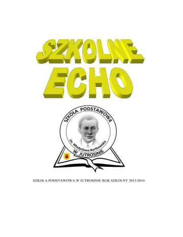 SZKOŁA PODSTAWOWA W JUTROSINIE ROK SZKOLNY 2015/2016 Kim był patron naszej szkoły? Wiele szkół ma swoich patronów. Są to różni ludzie, znani lub mniej znani. Właśnie do tych ostatnich należy patron naszej szkoły – Władysław Bartkowiak. Dlatego postanowiliśmy przybliżyć Wam jego sylwetkę, bo warto pielęgnować lokalny patriotyzm, a nasz patron na pewno był bohaterem naszej małej ojczyzny. Władysław Bartkowiak (1906 – 1945) Urodził się 26 kwietnia 1906 roku w biednej rodzinie chłopskiej w Śląskowie w powiecie rawickim. W 1920 roku ojciec skierował go na naukę do gimnazjum w Rawiczu (był chłopcem poważnym i rozsądnym, dlatego powierzano mu rozmaite funkcje – 24.01.1922 roku wstąpił do harcerstwa a w starszych klasach był drużynowym). Po ukończeniu gimnazjum - w 1929 roku - odbywał służbę wojskową w Szkole Podchorążych Piechoty w Gródku Jagiellońskim, pod Lwowem. W tymże też roku został studentem, a następnie absolwentem Matematyczno – Przyrodniczego Uniwersytetu Poznańskiego. W tamtym czasie należał do niewielu wykształconych synów chłopskich. Działacz wiejski, ściśle związany ze Stronnictwem Ludowym. Uczestniczył w akcjach organizowanych przez stronnictwo (strajk chłopski, Święto Ludowe, święto czynu chłopskiego, dożynki, kursy społeczno – polityczne).· Należał do Wielkopolskiego Związku Młodzieży Wiejskiej, jednak jego postawa znacznie różniła się od idei związku. Głównym zarzutem ze strony Bartkowiaka było wytykanie grupie rządzącej dbania o sprawy prywatne, tchórzostwa, braku patriotyzmu, ucisku chłopów – za co stanął przed Sądem Grodzkim w Jutrosinie 19.05.1936 roku. Został uniewinniony, jednak odwołanie wniesione przez komendanta powiatowego policji zakończyło się skazaniem Bartkowiaka przez Sąd Okręgowy w Ostrowie na 6 miesięcy aresztu i koszty procesowe. Sąd Najwyższy oddalił kasację tego wyroku i obciążył do dodatkowymi kosztami. Zmarł 17 kwietnia 1945r. FILIP & MIŁOSZ Poniżej przedstawiamy krótkie charakterystyki naszych kochanych nauczycieli. Jako uczniowie klasy szóstej z trzyletnim doświadczeniem stwierdzamy, że: • • • • • • • • • • • • • • Marlena Janura - polonistka, jest miłą, dowcipną osobą o jasnych włosach, Sylwia Wojciechowska - matematyczka, jest kobietą o czarnych włosach, ale matmę da się przeżyć, Tomasz Matysiak- wuefista, szkolny komik, nie odpuszcza nikomu, Beata Bijoch - wychowanie fizyczne, ma poczucie humoru, Barbara Borucka - przyroda, lepiej nie przeszkadzać na lekcji, Beata Wielebska - muzyka, żartobliwa, Anna Jamroży - vice-dyrektor, poważna, ale razem spokojna, Janina Walkowiak - plastyka, żartobliwa, Anita Wachowiak - technika,ma poczucie humoru, Renata Piotrowska - język polski, spokojna, Waldemar Swornowski - dyrektor, religia,żartobliwy, Katarzyna Żarczyńska - język angielski, żartobliwa, lubiana nauczycielka, Joana Głowacz - bibliotekarka, poważna, Jolanta Machowiak - wychowanie do życia w rodzinie, potrafi zainteresować. Szymon i Robcio Trądzik młodzieżowy to niestety zmora wielu osób w wieku dojrzewania. Tak jak ze wszystkim i ta przypadłość bardziej straszy tych, którzy o niej mało wiedzą. Dlatego wraz z nami macie okazję przekonać się, że z trądzikiem można wygrać! Trądzik młodzieńczy, trądzik pospolity – choroba skóry występująca w wieku pokwitania,, gdy pod wpływem zmian hormonalnych (nadmiernej stymulacji androgenowej) dochodzi do nadmiernego pobudzenia czynności gruczołów łojowych(łojotoku). Objawami trądziku są zaskórniki, grudki i krostki,, popularnie nazywane wągrami lub pryszczami. Ich Ich powstawanie wiąże się z nadmiernym wytwarzaniem łoju i wzmożonym rogowaceniem komórek przewodu wyprowadzającego gruczołów łojowych skóry. Nakładające ące się na siebie warstwy zrogowaciałego naskórka wypełniają przewód wyprowadzający i zamykają jego ujście. Zablokowane ujście przewodu gruczołu łojowego czopem łoju i zrogowaciałych komórek to tak zwany zaskórnik, który jest niezapalną postacią trądziku. W takim nagromadzeniu naskórka zrogowaciałego i łoju niektóre bakterie (szczególnie z gatunku Propionibacterium acnes),zawsze acnes obecne na powierzchni skóry, skóry, rozwijają się szczególnie dobrze i wywołują proces zapalny,, który może powodować pęknięcie ściany ści przewodu wyprowadzającego i rozwój zapalenia w okolicy gruczołu łojowego. Grudki stają się wtedy duże, czerwone i bolesne. Około 80% przyczyn trądziku to czynniki genetyczne. Absolutnie nie można samemu próbować pozbyć się tych skórnych niespodzianek, polecamy raczej wizytę u kosmetyczki i stosowanie odpowiednio dobranych kosmetyków. Znajdziecie je w każdej drogerii, ceny również można dostosować do zawartości portfela. Może w wieku dojrzewania trudno pogodzić się ze szpecącym trądzikiem na twarzy (zwłaszcza, gdy zabiega się o dziewczynę lub chłopaka), ale zapewniamy, że to minie. Trzeba tylko dbać i być cierpliwym. POWODZENIA! ANKA 1 2 3 4 5 6 7 8 A 1. Woda jest potrzebna do … 2. Partnerki koguta. 3. Alkohol wytwarzany z winogron. 4. … w stogu siana. 5. Spalasz ją w czasie wykonywania sportu. 6. Opiekunka do dzieci. 7. Myślał … o niedzieli, a w sobotę łeb mu ścieli. 8. Piszą ją ewangeliści. Marcin Sporty w naszej szkole Nauczyciele, którzy prowadzą lekcje wychowania fizycznego, czyli p. Beata Bijoch i p. Tomasz Matysiak starają się dokładnie nam wyjaśnić każde zasady różnych gier, jednak że nie zawsze wszystko rozumiemy. Po zapoznaniu się z wszystkimi zasadami rozpoczyna się pokazywanie ćwiczeń i niezła zabawa. Popularne sporty w naszej szkole: • koszykówka - dyscyplina sportu drużynowego, w której dwie pięcioosobowe drużyny grają przeciwko sobie, sobie próbując zdobyć punkty, punkty umieszczając piłkę w koszu; jest jest jedną z najpopularniejsz