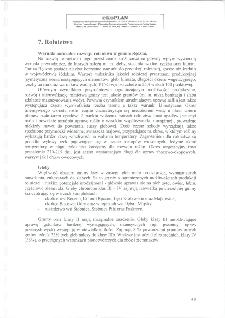 rozw6j i intensyfikacj? ro!nictwa gminy jest jakosc grunt6w (m. in. niska bonitacja i slaba
