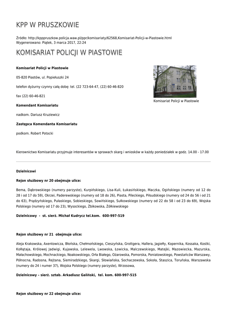 KPP W PRUSZKOWIE KOMISARIAT POLICJI W PIASTOWIE