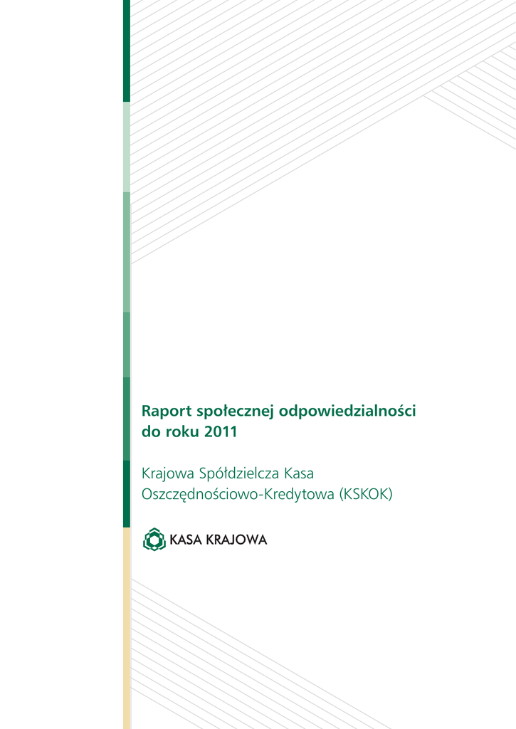 Raport społecznej odpowiedzialności do roku 2011 Krajowa Spółdzielcza Kasa Oszczędnościowo-Kredytowa (KSKOK) zawartość merytoryczna: Aleksandra Jankowska Doradca Kasy Krajowej ds. zrównoważonego rozwoju tłumaczenie: „BANK & BANK” Translation Centre wydawca: Spółdzielczy Instytut Naukowy www.sin.edu.pl nakład: 100 egzemplarzy Sopot, lipiec 2012 Informacje o raporcie Grzegorz Bierecki i Brian Branch o społecznej odpowiedzialności kas kredytowych Nie dla zysku, lecz dla dobra wspólnego Nasza misja Społeczna odpowiedzialność systemu SKOK Etyka, zaufanie i pomoc Historia ruchu kas spółdzielczych Dr Franciszek Stefczyk – nasz patron Ład korporacyjny Podstawowe informacje o Krajowej Spółdzielczej Kasie Oszczędnościowo-Kredytowej Najważniejsze podmioty systemu Ciała statutowe Kasy Krajowej Doradca Kasy Krajowej ds. zrównoważonego rozwoju Przeciwdziałanie praniu pieniędzy oraz finansowaniu terroryzmu Zarządzanie kryzysowe w Kasie Krajowej Zwalczanie korupcji Polityka jakości Struktura zatrudnienia Środowisko Strategia i polityka środowiskowa Inwestycje prośrodowiskowe Segregacja odpadów Produkt – badania i dział rozwoju Społeczeństwo Powszechna Deklaracja Praw Człowieka Global Compact Strategia i polityka społeczna Pracownicy – nasz klucz do sukcesu Szkolenia wewnętrzne i zewnętrzne Współpraca krajowa Współpraca zagraniczna Zaangażowanie społeczne Wsparcie społeczne Mecenat kultury i sztuki Film Wydawnictwa, prasa, książki Muzyka Religia Sport Ekonomia, wykluczenie finansowe i ubóstwo Warsztaty dziennikarskie Historia, tradycja, dziedzictwo narodowe Pamięci ofiar katastrofy smoleńskiej Pozostałe działania prospołeczne 7 9 13 15 15 17 19 19 23 25 27 31 35 37 37 37 37 38 41 43 46 46 46 49 51 57 57 59 59 60 61 65 67 69 69 71 75 77 79 79 83 83 84 84 Nasze nagrody 89 SKOK-i w liczbach 95 Rozwój Spółdzielczych Kas Oszczędnościowo-Kredytowych SKOK-i w liczbach Sprawozdania finansowe za rok 2011 97 98 103 1 2 3 4 5 6 7 A report on corporate social responsibility until 2011 National Association of Cooperative Savings and Credit Unions (NACSCU) developed by: Aleksandra Jankowska Sustainable Development Advisor National Association of Cooperative Savings and Credit Unions translation: “BANK & BANK” Translation Centre published by: Cooperative Research Institute www.sin.edu.pl edition: 100 copies Sopot, July 2012 Information about the report Grzegorz Bierecki and Brian Branch about credit union corporate social responsibility Not for profit, but for the common good Our mission Corporate social responsibility of the credit union system Ethics, trust and assistance History of credit union movement Dr. Franciszek Stefczyk – our patron Corporate governance Basic information about the National Association of Cooperative Savings and Credit Unions Major entities of the system NACSCU bodies, as provided for by its articles of incorporation NACSCU Sustainable Development Advisor Prevention of money laundering and financing of terrorism Crisis management in NACSCU Corruption combating Quality management policy Structure of employment Environment Environmental strategy and policy Pro-environmental investments Segregation of waste Product – research & development department Society The Universal Declaration of Human Rights Global Compact Social strategy and policy Employees – our key to the success Internal and external training Cooperation with domestic institutions Cooperation with foreign institutions Public commitment Social commitment Art and cultural patronage Film Publications, press, books Music Religion Sports Economics, financial exclusion and poverty Journalism workshops History, tradition, national heritage In remembrance of the Smolensk aircraft crash victims Other pro-social activities 7 9 13 15 15 17 19 19 23 25 27 31 35 37 37 37 37 38 41 43 46 46 46 49 51 57 57 59 59 59 60 65 67 69 71 71 77 79 81 83 84 85 85 86 Our awards 89 Polish Credit Unions in figures 95 Credit union development Polish Credit Unions in figures Financial statements for the 2011 year 97 98 103 1 2 3 4 5 6 7 Kasa jest organizacją ludzi, a nie kapitału. Jest zorganizowana w formie prawnej spółdzielni, w której musi być uznawana zasada rządów demokratycznych i w związku z tym – prymatu większości nad mniejszością. Kodeks Dobrych Praktyk i Zasad Działania Spółdzielczych Kas Oszczędnościowo-Kredytowych1 A credit union is an organisation of people, not of capital. It takes the legal shape of a cooperative society in which the principle of democratic rule, and – consequently – the primacy of majority over minority has to be recognized. The Code of Good Practices and Operating Principles of Cooperative Savings and Credit Unions1 1 Zob. Kodeks Dobrych Praktyk i Zasad Działania Spółdzielczych Kas Oszczędnościowo-Kredytowych pod red. Janusz Ossowskiego, Fundacja na rzecz Polskich Związków Kredytowych, Sopot 2008. (The Code of Good Practices and Operating Principles of Cooperative Saving and Credit Unions, Janusz Ossowski[eds.], Foundation for Polish Credit Unions, Sopot 2008). 6 7 Informacje o raporcie Information about the report Raport społecznej odpowiedzialności Krajowej Spółdzielczej Kasy Oszczędnościowo-Kredytowej (Kasy Krajowej) powstał w czerwcu 2012 roku na podstawie przeprowadzonego w Kasie Krajowej audytu etycznego. The report on corporate social responsibility of the National Association of Cooperative Savings and Credit Unions (NACSCU) was developed in June 2012 and was based on the ethical audit carried out at NACSCU. Jako że jest to pierwszy tego typu raport, zebraliśmy w nim najważniejsze aspekty działalności prospołecznej Kasy Krajowej z ostatnich lat. Raport nie ma jasno zarysowanych ram czasowych i podsumowuje naszą najważniejszą działalność w wymiarze społecznym do obecnego czasu. Postanowiliśmy w nim przedstawić również najistotniejsze jednostki organizacyjne funkcjonujące w systemie S