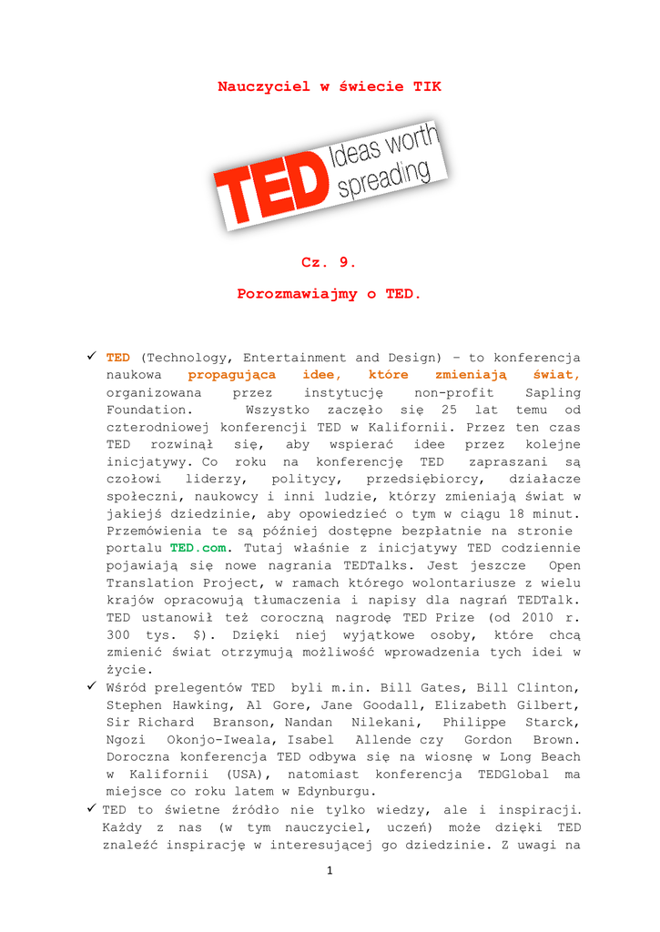 Nauczyciel w świecie TIK Cz. 9. Porozmawiajmy o TED.