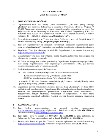 REGULAMIN TESTU „Klub Recenzentki Q10 Plus” 1