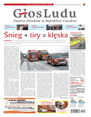 sobota | 18 lutego 2012 | nr 21 (LXVII) | cena: 9 kč Stonawa – wieś postępowa | s. 5 Pismo wychodzi we wtorki, czwartki i soboty. www.glosludu.cz SAJ Brno – tradycja i innowacja | s. 6 »Pomniki« Unii Europejskiej« | s. 7 Śnieg + tiry = klęska ZDARZYŁO SIĘ KOLARZE PONOWNIE W CIESZYNACH Słowak Peter Sagan, triumfator ubiegłorocznego Tour de Pologne. Fot. DANUTA CHLUP Samochodem redakcyjnym ruszyliśmy w czwartek rano z Czeskiego Cieszyna po obwodnicy do Trzyńca. Trasa, z której korzystają tiry, była w kierunku na Słowację praktycznie nieprzejezdna. Już kawałek za Cieszynem, przed zjazdem w kierunku Trzyńca i Mostów, utknęliśmy w korku – na szczęście nie na długo. Jak się później okazało, policjanci nie wpuszczali tirów dalej w kierunku Trzyńca, by nie powiększać korka, który utworzył się pod Nieborowskim Kopcem, a rozpoczynał tuż za wjazdem do Ropicy. Na niedługim odcinku między początkiem gminy a mostkiem w Ropicy naliczyliśmy piętnaście stojących ciężarówek, w sumie do Nieborów ciągnął się sznur przeszło dwustu aut. W Trzyńcu i Jabłonkowie ogłoszono, że ze względu na katastrofalne opady śniegu na teren miast nie będą wpuszczane żadne tiry z kierunku od Czeskiego Cieszyna, Frydku-Mistku ani Mostów koło Jabłonkowa. Wieczorem zakaz został odwołany. Niemniej wczoraj ponownie utknął tir na Nieborowskim Kopcu i utrudnienia zaczęły się od nowa. Najbardziej krytyczna sytuacja panowała w czwartek w Mostach koło Jabłonkowa oraz za przejściem granicznym na Słowacji. Obwodnica zamieniła się w olbrzymi „parking”, niektórzy kierowcy zostali uwięzieni nawet przez 17 godzin. Z pomocą przyszła im Straż Pożarna. – Strażacy przede wszystkim wyciągnęli węgierski tir, który uległ wypadkowi, później pomagali wydostać się ze śniegu (pokrywa sięgała nawet metra) innym pojazdom – poinformował rzecznik Wojewódzkiej Straży Fot. MAREK SANTARIUS PROBLEM: Choć wszędzie jest biało, to ostatni czwartek można nazwać czarnym czwartkiem w ruchu drogowym w naszym regionie. Nieustające opady śniegu uwięziły setki tirów na trasie między Żyliną a Jabłonkowem, kolejne ciężarówki stały przez kilka godzin w Trzyńcu-Nieborach. Tiry częściowo zablokowały w czwartek również obwodnicę Czeskiego Cieszyna. Pożarnej, Petr Kůdela. Urząd Wojewódzki z funduszu przeznaczonego na sytuacje kryzysowe zapewnił posiłki i napoje dla kierowców oraz duży namiot, w którym mogli się ogrzać. Dla tych, którym w korku skończyło się paliwo i nie mogli tym samym ogrzewać samochodów, zapewniono również benzynę czy naftę. Sytuacja uległa poprawie ok. godz. 16.00, kiedy zaczęto na przemian przepuszczać po kilka tirów w obu kierunkach. Normalny ruch został przywrócony w nocy z czwartku na piątek. Wczoraj opady nadal się utrzymywały. Śnieg zasypywał nawet miasta i wioski, gdzie jeszcze kilka dni temu prawie go nie było. Na Podbeskidziu sytuacja jest o tyle poważna, że solidna warstwa białe- REKLAMA go puchu leżała tam już wcześniej. Wójt Mostów, Josef Szotkowski, ogłosił w czwartek od godz. 10.00, do odwołania, oficjalny stan klęski śniegowej. Co to oznacza w praktyce? – W normalnej sytuacji gmina ma obowiązek postarać się, by drogi w zimie były przejezdne najpóźniej do 24 godzin. W sytuacji klęski nie mamy takiego obowiązku, bo nie jesteśmy w stanie się z niego wywiązać, musimy jedynie zapewnić, by był przynajmniej przetarty szlak dla pieszych. Teraz faktycznie jest taka sytuacja, że nie wszyscy ludzie wyjadą ze swych domów. Od wieczora w środę do południa w czwartek nie kursowały też autobusy na Szańce. Stan klęski na pewno potrwa przez weekend, w poniedziałek zobaczymy, jaka będzie sytuacja – powiedział Szotkowski naszej redakcji wczoraj po południu. Dodał, że droga do ośrodka narciarskiego powinna być w weekend przejezdna. Pomoc zaproponowało gminie Górskie Pogotowie Ratunkowe. W przypadku, gdy karetka pogotowia nie mogłaby dojechać do pacjenta, ratownicy podwieźliby go do karetki na skuterze. Trudna sytuacja panuje również w Bukowcu. Niemniej wójt Monika Czepczorová powiedziała wczoraj, że drogi udaje się utrzymać przejezdne, bez problemu można też dojechać do ośrodka narciarskiego. – Zwały śniegu koło dróg są tak wysokie, że pługosyparki już nie mają go gdzie odgarniać. Dlatego zastosowaliśmy frezy, które dmuchają śnieg wyżej. Nie wszystkim się podoba, że tym samym dmuchamy im go do ogrodów, ale nie ma innego wyjścia – przybliżyła panującą w Bukowcu sytuację. DANUTA CHLUP Meta jednego z etapów tegorocznego wyścigu kolarskiego „Tour de Pologne” ponownie będzie w Cieszynie. Kibice kolarstwa już teraz zacierają ręce z radości, tym bardziej, iż ubiegłoroczny wyścig należał do najlepszych w całej historii imprezy. – Cieszyn to piękne miasto i zasługuje na szczególne traktowanie – powiedział „Głosowi Ludu” Czesław Lang, dyrektor polskiego narodowego wyścigu. Według wstępnych ustaleń wynika, że kolarze po raz kolejny finiszować będą na zabytkowym rynku w Cieszynie. Termin cieszyńskiego etapu nie jest jeszcze znany, wiadomo jednak, iż cały wyścig Tour de Pologne rozpocznie się 10 lipca w Jeleniej Górze i potrwa do 16 lipca. W finał w Cieszynie wpleciona jest również trasa po Czeskim Cieszynie. (jb) Zgromadzenie Ogólne Kongresu Polaków w RC NAJBLIŻSZE SEJMIKI ODBĘDĄ SIĘ: 23. 2. – PRAGA, DOM MNIEJSZOŚCI NARODOWYCH, GODZ. 17.00 24. 2. – KARWINA–FRYSZTAT, DOM PZKO, GODZ. 17.00 24. 2. – SUCHA GÓRNA, W KLUBIE (WAŁOSZKOWA), GODZ. 16.00 POGODA sobota niedziela poniedziałek dzień: 2 do 6 0C noc: 2 do -2 0C wiatr: 2-6 m/s dzień: 2 do 6 0C noc: 2 do -2 0C wiatr: 3-7 m/s GL-701 GL-006 REKLAMA 2 REGION ŚMIERĆ NA DRODZE REGION (jb, ox) – Wczoraj około godziny 14.00 doszło w Skoczowie do śmiertelnego wypadku. Zginął kierowca samochodu