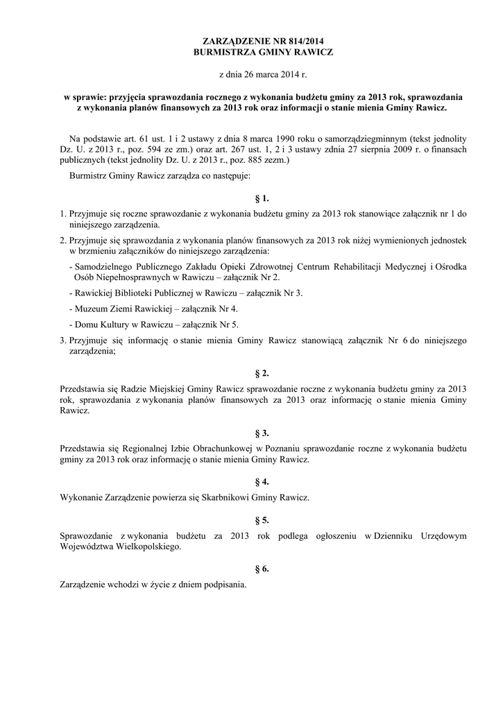 Zarządzenie Nr 814/2014 z dnia 26 marca 2014 r.
