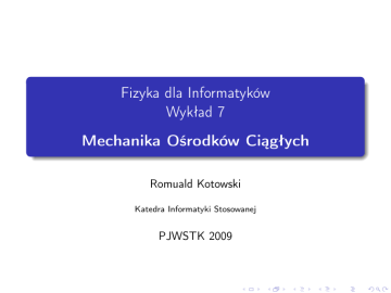 Fizyka dla Informatyków Wykład 7 [0.3cm] Mechanika Osrodków