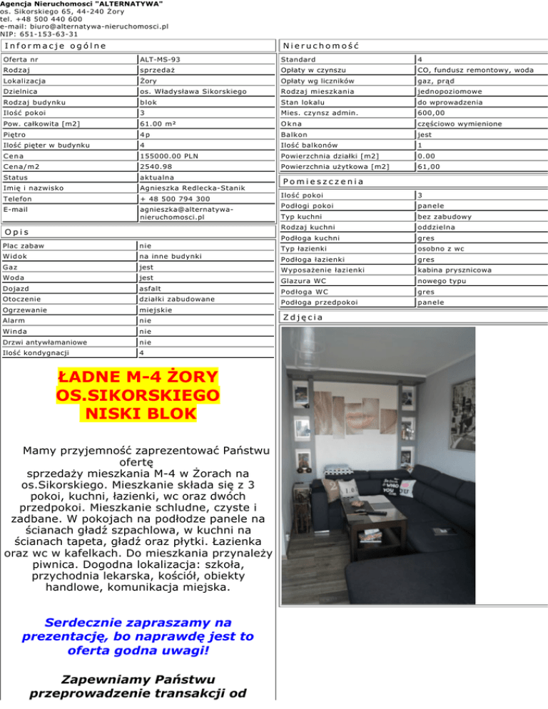 MIESZKANIE M-4 os. 700-Lecia Żory DOBRA CENA!!! 133 000 zł