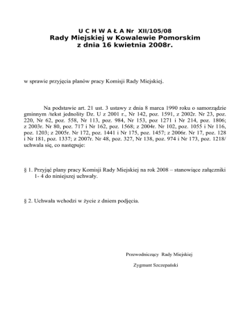 Rady Miejskiej w Kowalewie Pomorskim z dnia 16 kwietnia 2008r.