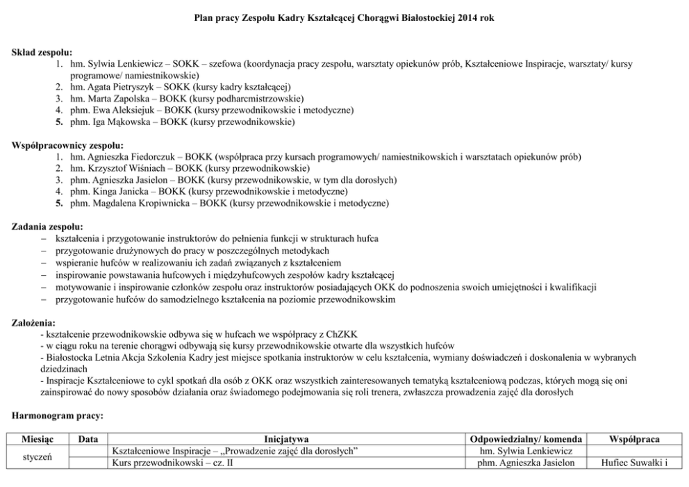 Plan pracy Zespołu Kadry Kształcącej Chorągwi Białostockiej na