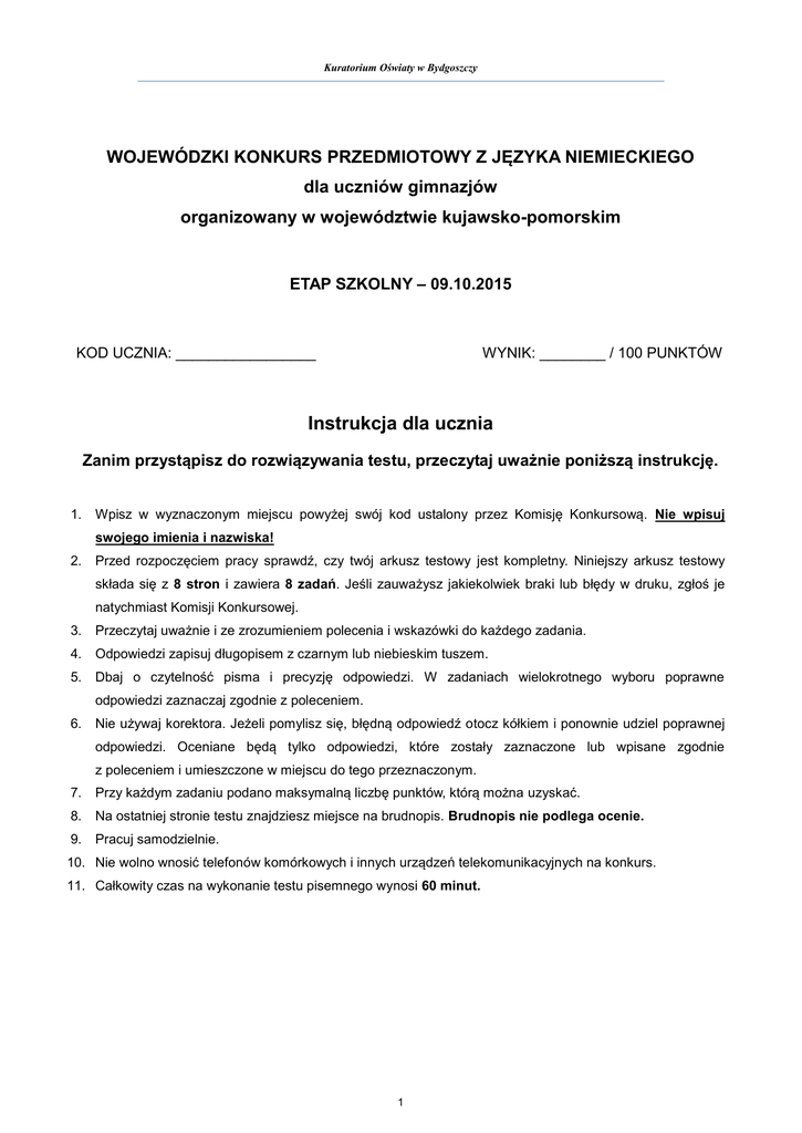 Instrukcja dla ucznia - Kuratorium Oświaty w Bydgoszczy