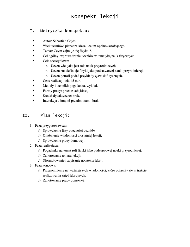Konspekt lekcji