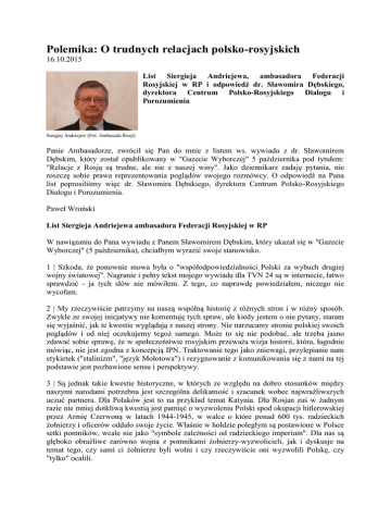 Rosyjskiej w RP i odpowiedź dr. Sławomira Dębskiego,