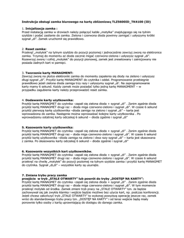 Instrukcja obsługi zamka biurowego na kartę - TLZ 5600 ID