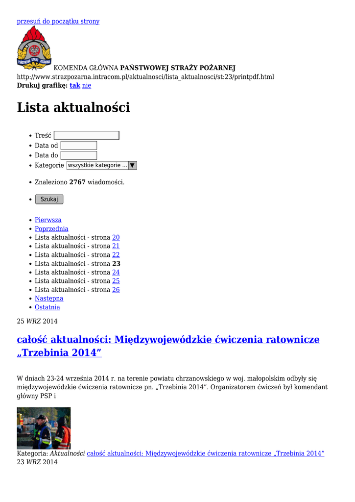 Lista aktualności - Komenda Główna Państwowej Straży Pożarnej