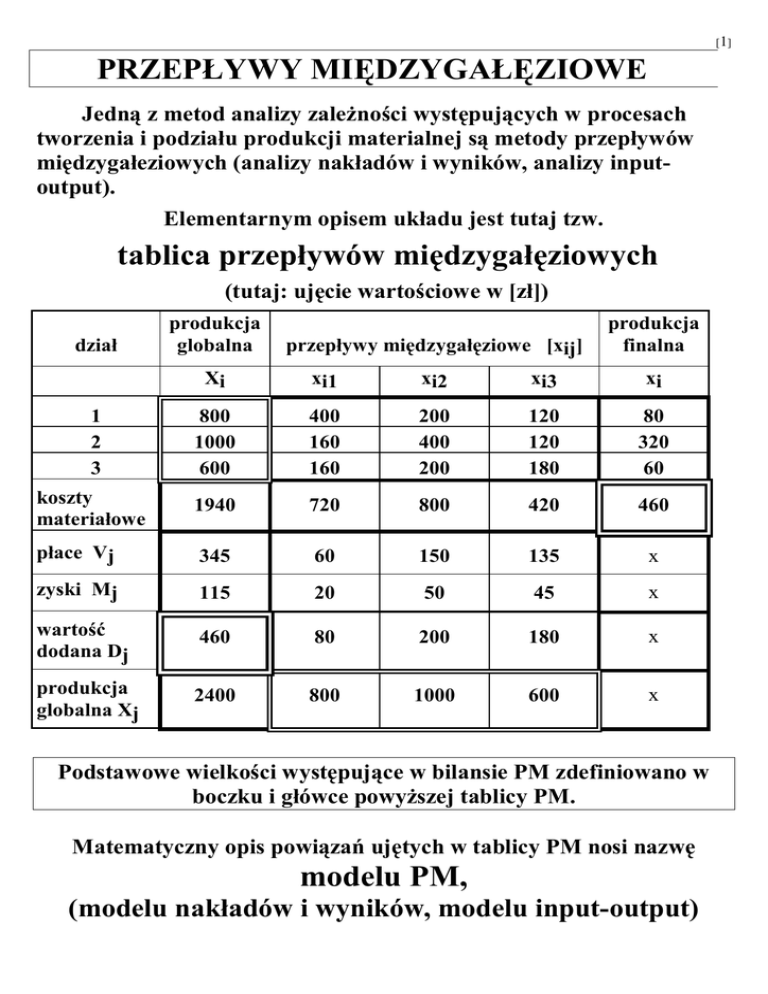 PRZEPŁYWY MIĘDZYGAŁĘZIOWE. tablica przepływów