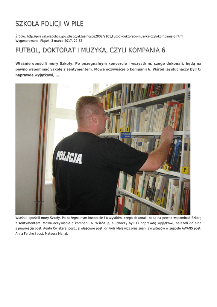 SZKOŁA POLICJI W PILE FUTBOL, DOKTORAT I MUZYKA, CZYLI