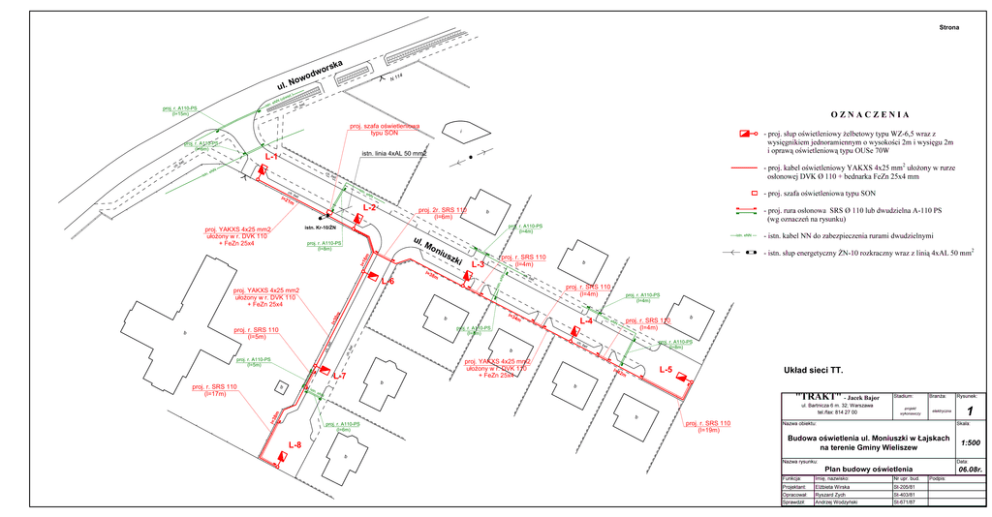 Strona u N( . eN istn proj. r. A110-PS (l=15m) ka ors w d wo o N l. ośw N1 14 ) iet. b ch. e t. proj. szafa oświetleniowa typu SON proj. r. A110-PS (l=6m) i istn. linia 4xAL 50 mm2 L-1 et. .b ch N . eN istn ch. bet . ch. istn . be t. l=2 1m eN N L-2 proj. 2r. SRS 110 (l=6m) b proj. r. A110-PS (l=4m) istn. Kr-10/ŻN ul. M L-6 on ius z ki L-3 l=3 8m l=3 0m proj. YAKXS 4x25 mm2 ułożony w r. DVK 110 + FeZn 25x4 ch. b be t. proj. r. SRS 110 (l=4m) l=3 4m b L-4 istn .e proj. r. A110-PS (l=4m) proj. r. SRS 110 (l=4m) NN proj. r. A110-PS (l=8m) proj. r. SRS 110 (l=5m) . bet proj. YAKXS 4x25 mm2 ułożony w r. DVK 110 + FeZn 25x4 L-7 b proj. r. A110-PS (l=8m) be t. b c h. ch. bet . ch. proj. r. A110-PS (l=5m) l=4 L-5 2m Układ sieci TT. b proj. r. SRS 110 (l=17m) b b istn .e NN l=3 8m b istn. eNN proj. r. SRS 110 (l=4m) eN N l=1 6m proj. r. A110-PS (l=8m) istn . proj. YAKXS 4x25 mm2 ułożony w r. DVK 110 + FeZn 25x4 b proj. r. A110-PS (l=6m) L-8 b proj. r. SRS 110 (l=19m)