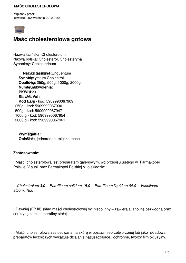 Unguentum Cholesteroli jest surowcem farmaceutycznym przeznaczonym do wytwarzania