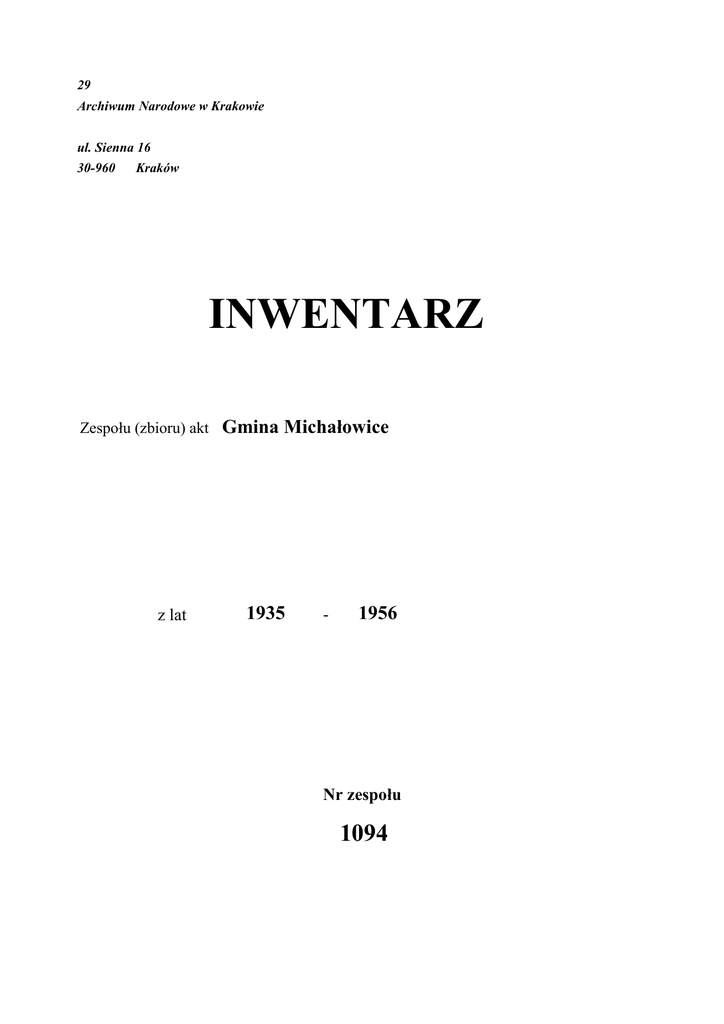 inwentarz - Archiwum Narodowe w Krakowie.