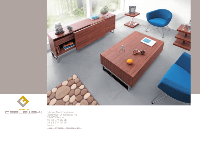 Fabryka Mebli Ceglewski Piotrowice, ul. Słupecka 45 62-400 Słupca 48 63 274 37 03 48 63 274 37 04 Polska Wybarwienia litych mebli: OAK - dąb natura WAL - orzech natura CHR - chereśnia natura WHT - biały połysk OWC - dąb/orzech/czereśnia Stal: HSS - stal nierdzewna HCH - chrom ] 6201 [ 105x67,5x45 ] 6202 [ 105x67,5x45 ] 6203 [ 180x67,5x45 ] 6204 [ 120x80x40 ] 6205 [ 120x120x40 ] 6001 [ 40x50x40 ] 6002 [ 40x50x40 Fabryka Mebli Ceglewski Piotrowice, ul. Słupecka 45 62-400 Słupca 48 63 274 37 03 48 63 274 37 04 Polska Wybarwienia litych mebli: OAK - dąb natura WAL - orzech natura CHR - chereśnia natura WHT - biały połysk OWC - dąb/orzech/czereśnia Stal: HSS - stal nierdzewna HCH - chrom ] 6003 [ 120,5x90x35,2 Fabryka Mebli Ceglewski Piotrowice, ul. Słupecka 45 62-400 Słupca 48 63 274 37 03 48 63 274 37 04 Polska Wybarwienia litych mebli: OAK - dąb natura WAL - orzech natura CHR - chereśnia natura WHT - biały połysk OWC - dąb/orzech/czereśnia Stal: HSS - stal nierdzewna HCH - chrom ] 6301 [ 105x55,1x45 ] 6302 [ 175,5x55,1x450