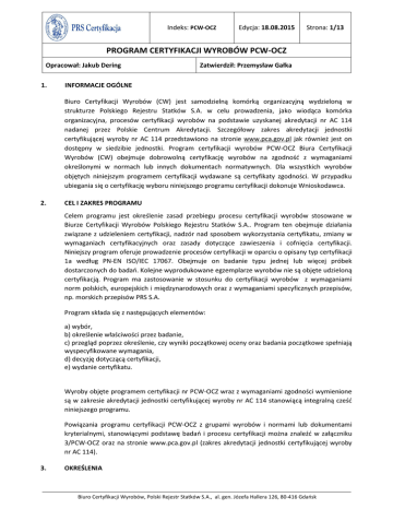 PCW-OCZ Program certyfikacji wyrobów PCW-OCZ z dn