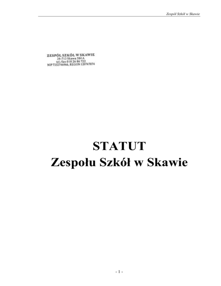 STATUT Zespołu Szkół w Skawie - Raba Wyżna