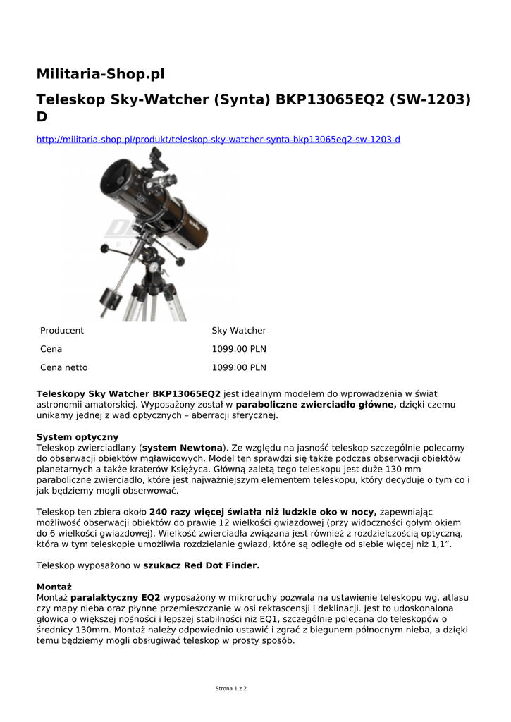 Militaria-Shop.pl Teleskop Sky-Watcher (Synta) BKP13065EQ2 (SW