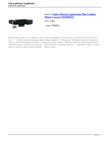 Tytuł główny nagłówka podtytuł nagłówka nazwa: Zolux Obroża regulowana Mac Leather 20mm Czarna [522040NO] marka: Zolux cena: 19.00 zł Obroża Mac Leather o szerokości 20 mm i regulowanej długości. Dla zwierząt o obwodzie szyi od 33 do 47,5 cm. Obroża wyróżnia się dzięki dołączonemu medalowi. Wykonanie z delikatnej eko-skóry obszytej na taśmie. Materiał przyjemny w dotyku Sympatyczny motyw łapek. Metalowe kółko na doczepienie smyczy i wygodne zapięcie z tworzywa sztucznego. Wytrzymałość i elegancja w jednym. Seria Mac Leather zawiera smycze, obroże i szelki w wielu kolorach. Kolor czarny. 1/1