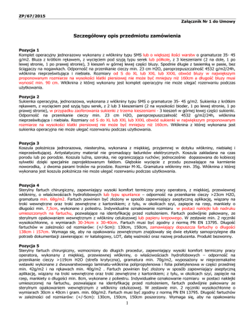 typu SMMMS o gramaturze min. 40g/m2, posiadający dodatkowe nieprzemakalne wzmocnienia w części przedniej i