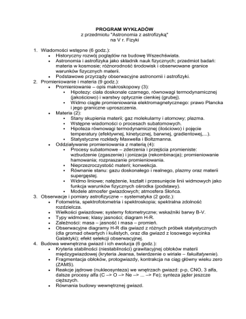 PROGRAM WYKŁADÓW z przedmiotu "Astronomia z astrofizyką" na