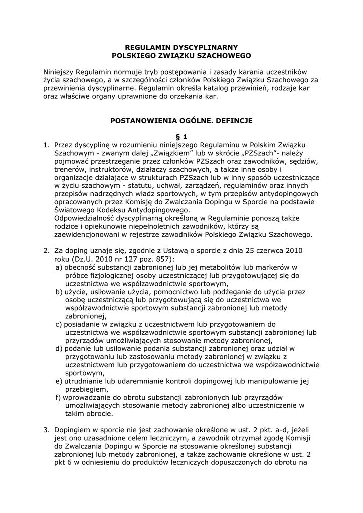 Regulamin Dyscyplinarny - Polski Związek Szachowy