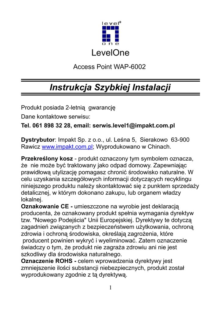 LevelOne Instrukcja Szybkiej Instalacji
