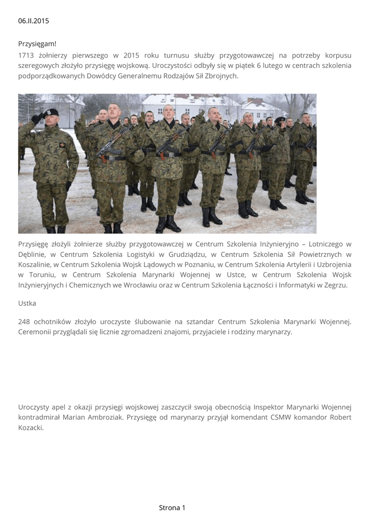 Strona 1 06.II.2015 Przysięgam! 1713 żołnierzy pierwszego w 2015
