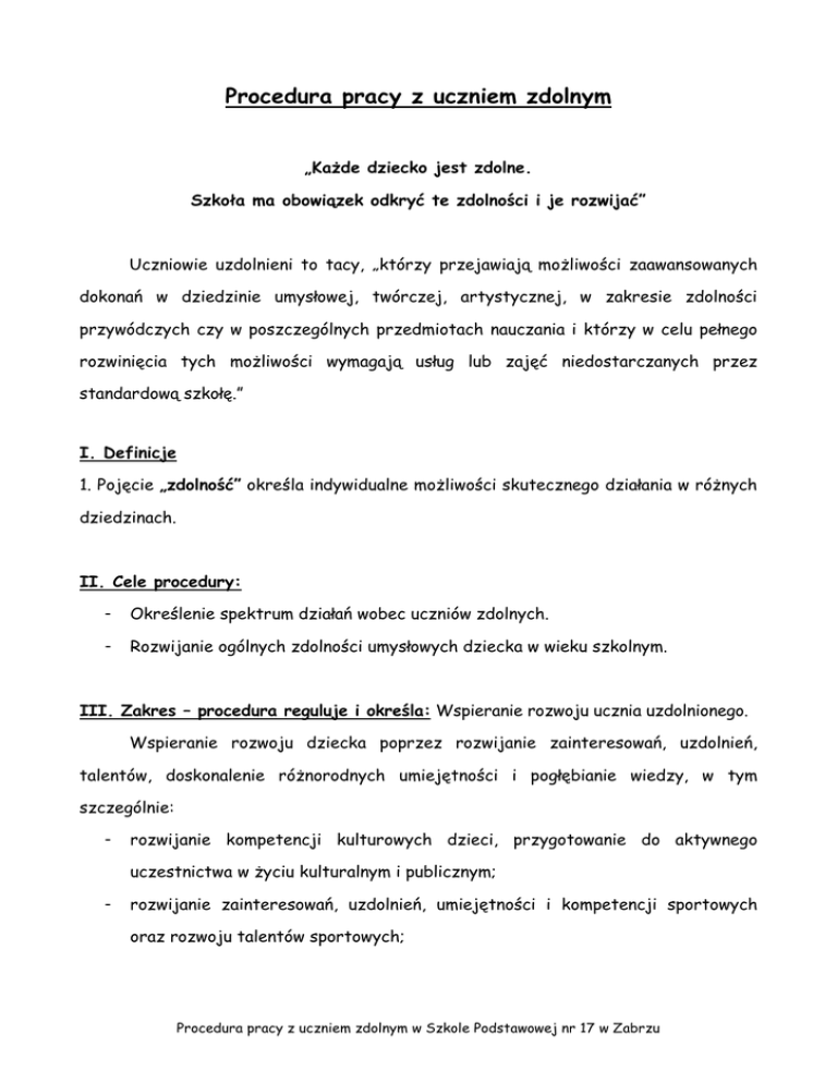 Procedura pracy z uczniem zdolnym