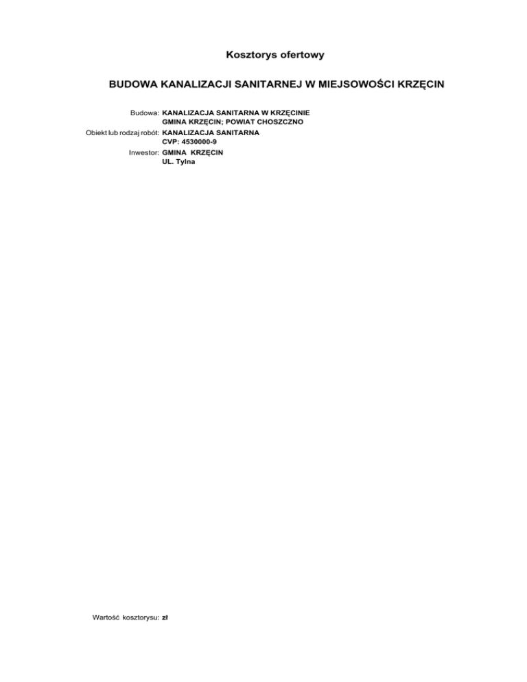 Kosztorys ofertowy BUDOWA KANALIZACJI SANITARNEJ W