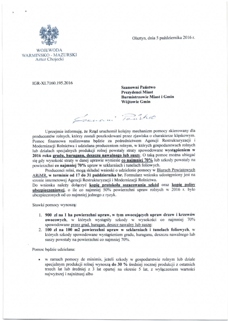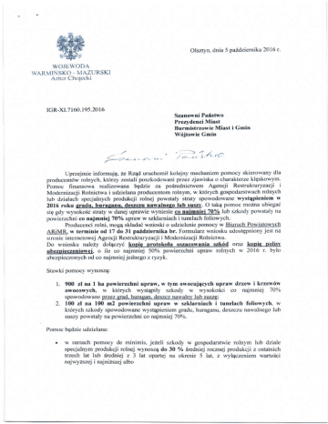 Uprzejmie proszg o powiadomicnie poszkodowanych rolnil6w o moZli\ ojci