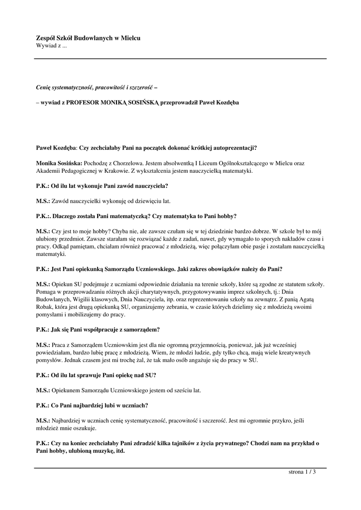 Wywiad z - Zespół Szkół Budowlanych w Mielcu
