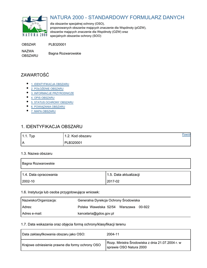 natura 2000 - standardowy formularz danych