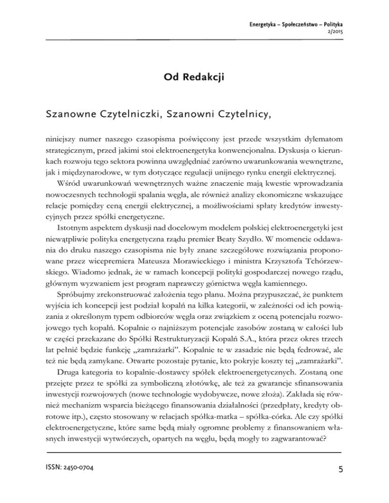 Od Redakcji, nr 2 / 2015 (2) - Energetyka-Społeczeństwo