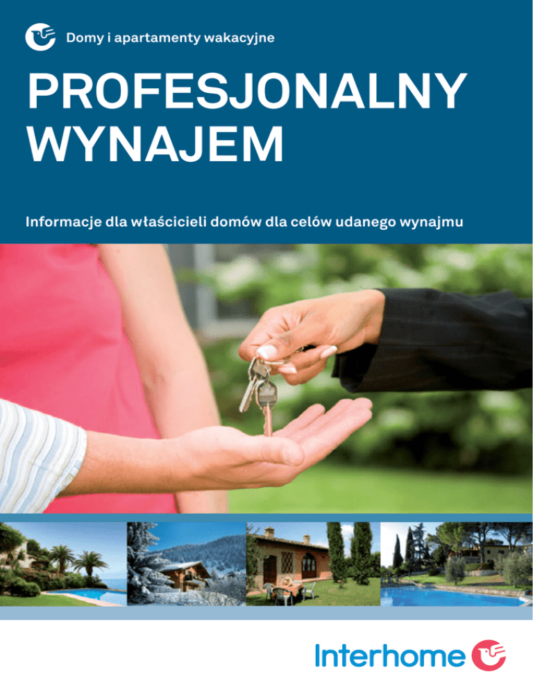 Domy i apartamenty wakacyjne PROFESJONALNY WYNAJEM Informacje dla właścicieli domów dla celów udanego wynajmu Witamy w Interhome! Komu powierzają Państwo swoją wakacyjną siedzibę, wybierając na partnera Interhome? Interhome jest jednym z wiodących pośredników w wynajmie apartamentów wakacyjnych w Europie. Jako pionierzy tej branży z ponad 44-letnim doświadczeniem gwarantujemy naszym partnerom bezpieczeństwo i profesjonalizm. Interhome jest spółką córką grupy Hotelplan, która z kolei należy do największej firmy handlowej w Szwajcarii – grupy Migros. Nasze szwajcarskie korzenie przejawiają się naturalnie także w naszych wysokich wymaganiach w zakresie jakości i serwisu – zarówno wobec naszych gości jak i właścicieli. Domy/mieszkania wakacyjne 2009 Andora 25 Belgia 50 Dania 6’000 Niemcy 1’300 Finlandia 3’000 Francja 5’200 Grecja 25 Wielka Brytania 145 Irlandia 110 Włochy 3’100 Chorwacja 1’030 Malta 25 Holandia 40 Austria 1’500 Polska 290 Portugalia 250 Szwajcaria 2’600 Słowacja 100 Hiszpania 2’600 Czechy 350 Turcja 110 Węgry 250 USA 1’6000 Zjednoczone Emiraty Arabskie 5 Razem 44’105 2 Jeśli zatem posiadają Państwo dom lub mieszkanie w regionie turystycznym, w Interhome znajdą Państwo dobrego doradcę w zakresie jego wynajmu. Bogactwo naszej oferty obejmującej ponad 45.000 adresów w Europie i USA daje gościom jak i właścicielom ogrom możliwości. rach, na wsi czy w mieście – tu są Państwo we właściwym miejscu. Sprawną organizację zapewnia nasza międzynarodowa sieć. Przedstawicielstwa krajowe na wszystkich większych rynkach dbają o sprzedaż, marketing i obsługę właścicielską. 100 lokalnych punktów usługowych działa bezpośrednio na miejscu w największych regionach turystycznych Europy. W taki sposób wypracowujemy dla naszych właścicieli dobre zyski, zdejmując z ich barków wszelkie ciężary związane z wynajmem. Interhome przyjmuje rocznie ponad 500‘000 urlopowiczów, a kolejny piękny dowód stanowi wysoka liczba naszych lojalnych właścicieli. Życzymy miłej lektury! Roger Müller Head of Purchasing Czy to willa, górski domek czy mieszkanie – nad morzem, w gó- 2007 mln EUR 2008 mln EUR 136,4 141,3 Koszty marketingowe 9,1 7,9 Inwestycje 4,1 2,0 498’906 525’117 50% 53% 317 303 Sprzedaż skonsolidowana Klienci Udział Interenetu w sprzedaży Liczba pracowników Co możemy dla Państwa zrobić? Państwa korzyści ze współpracy z Interhome: międzynarodowa sieć, profesjonalne serwisy i wysokie walory reklamowe. Międzynarodowa rezerwacja Państwa obiekt może być wynajmowany za pośrednictwem 48 biur rezerwacyjnych Interhome, 35 partnerów i ponad 15.000 biur podróży na całym świecie. Ponadto Państwa oferta może być rezerwowana przez gości na całym świecie bezpośrednio i całodobowo online. Własna sieć rezerwacyjna Interhome z przedstawicielstwami w 22 krajach zapewnia Państwu jako właścicielom apartamentów wakacyjnych optymalne obłożenie miejsc. Dodatkowo nasza oferta dostępna jest za pośrednictwem międzynarodowych elektronicznych systemów rezerwacji w biurach podróży, a także krajowych i lokalnych biurach. Proces przyjmowania gości odbywa się bez jakichkolwiek kosztów z Państwa strony. Jeśli sobie Państwo tego życzą, mogą Państwo oczywiście zająć się przyjmowaniem gości we własnym zakresie bądź wyznaczyć do tego celu zaufaną osobę. Profesjonalna prezentacja Państwa dom czy apartament wakacyjny prezentowany jest w profesjonalny sposób – ze wszystkimi zdjęciami, obszernym opisem domu i regionu oraz mapką. Portfolio Interhome wykorzystywane jest aktywnie do celów komercyjnych we wszystkich obszarach działania Interhome. Ukierunkowane kampanie reklamowe, marketing bezpośredni, reklama w Internecie, katalogi i targi umożliwiają naszym gościom znalezienie wymarzonego wakacyjnego lokum – a naszym właścicielom osiąganie zysków z pełnego obłożenia ich obiektu. Opieka na miejscu Wszędzie, gdzie Interhome prowadzi lokalne biura obsługi, Państwa dom bądź apartament wakacyjny objęty jest całoroczną opieką naszego doświadczonego personelu. Starannie strzeżemy Państwa własności również poza okresem wynajmu. Więcej informacji na temat korzyści i możliwości związanych z wynajmem znajdą Państwo na następnych stronach. «Z pomocą Interhome finansuję bieżące koszty mojego domu wakacyjnego.» M. Turner, wynajmujący z ramienia Interhome od 1986 r. 3 Nasza światowa sieć sprzedaży Międzynarodowa sieć rezerwacyjna i statystyki świadczące o optymalnym poziomie wynajmu. Sieć rezerwacyjna Interhome z jej przedstawicielstwami w 22 krajach europejskich, w USA i Australii oraz partnerami w dalszych 4 krajach gwarantuje optymalne obłożenie adresów wakacyjnych. Tego może dokonać jedynie silny, dysponujący rozległą siecią partner turystyczny z wieloletnim doświadczeniem. Nasi klienci mają obecnie wybór spośród liczby ponad 45.000 wymarzonych adresów wakacyjnych w 24 krajach. Ponad 500.000 gości spędza rocznie urlop w ramach ponad 7 milionów noclegów w domach i apartamentach wakacyjnych Interhome. Nasi klienci rekrutują się z całego świata, wielu z nich stało się z czasem naszymi wiernymi gośćmi. To piękny dowód zaufania, podobnie jak duża liczba naszych wieloletnich stałych wynajmujących. Pozostałe 16% Francja 23% Rosja 2% Hiszpania 5% Włochy 5% Polska 6% Niemcy 18% Holandia 8% Szwajcaria 17% Pochodzenie gości Niemcy 4% Pozostałe 8% Chorwacja 4% Francja 25% Austria 8% Hiszpania 13% Szwajcaria 24% Włochy 17% Najpopularniejsze kraje podróży «Z Interhome goście z całego świata mają dostęp do mojego domu wakacyjnego.» W. Schmidt, wynajmujący za pośrednictwem Interhome swoją willę w odległej o 1 km miejscowości Javea 4 A teraz przejdźmy do «drobnego druku» Interhome z pomocą jasnych zapisów umownych zapewnia dobre partnerstwo. Dalsze ważne informacje dotycz